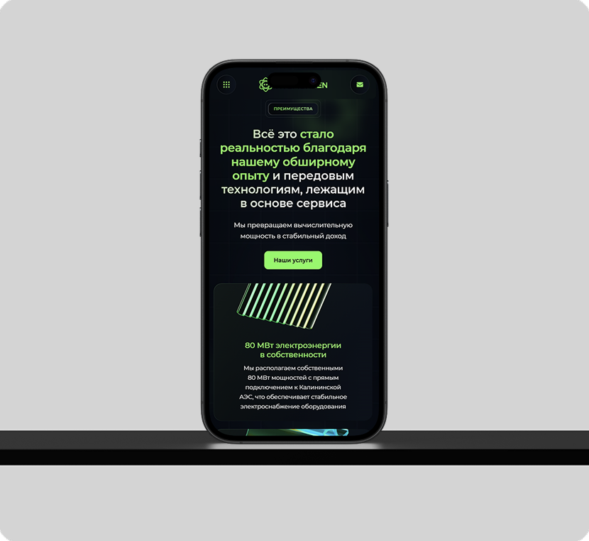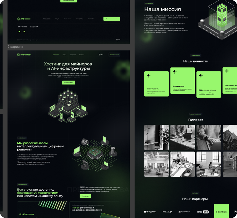 AtomGreen — это высокотехнологичный хостинг для майнеров и AI-инфраструктуры. Платформа обеспечивает стабильную работу, автоматический сбор данных, контроль энергозатрат и интеграцию с CRM-системами. Проект создан для компаний, которые ценят надёжность, эффективность и масштабируемость решений.