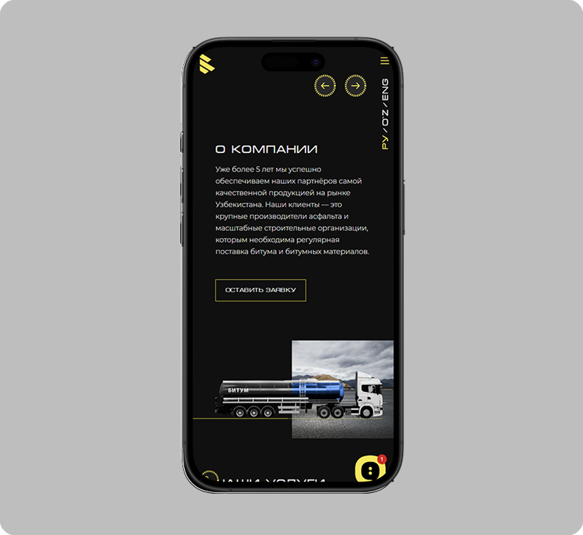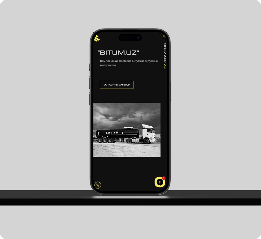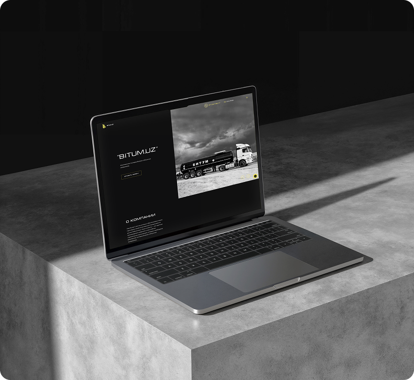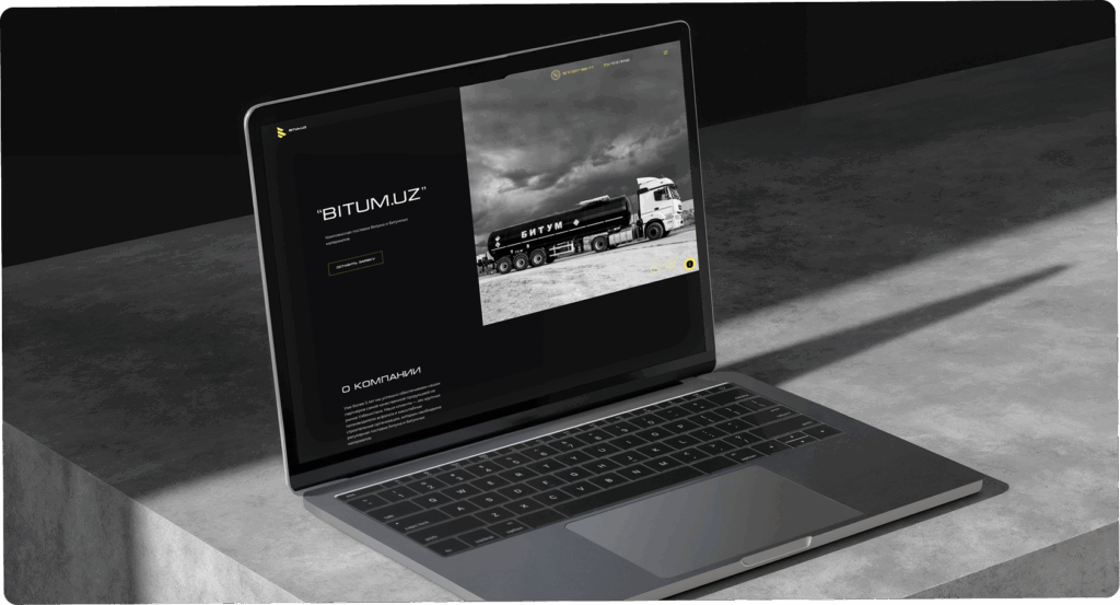 Bitum.uz — промышленная компания, специализирующаяся на производстве и поставке битумных материалов. Сайт разработан с акцентом на информативность и надёжность, демонстрируя технологичность, качество и масштаб предприятия. Проект подчёркивает доверие и профессионализм бренда.