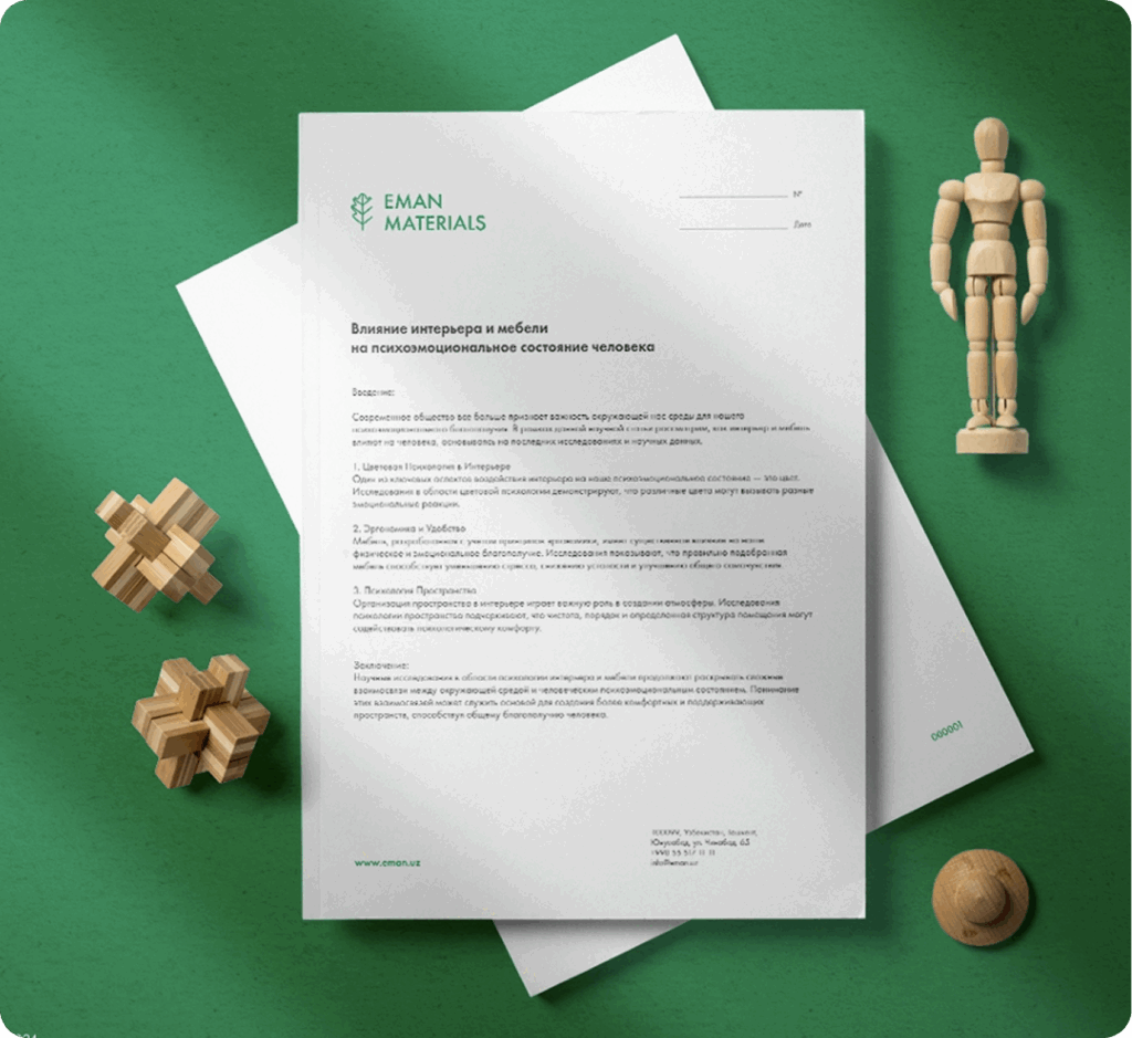 Ребрендинг Eman Materials был направлен на формирование сильного и современного бренда на рынке мебельных материалов. Основной задачей стало усиление позиционирования компании, отражающего ее ценности, качество продукции и профессионализм.