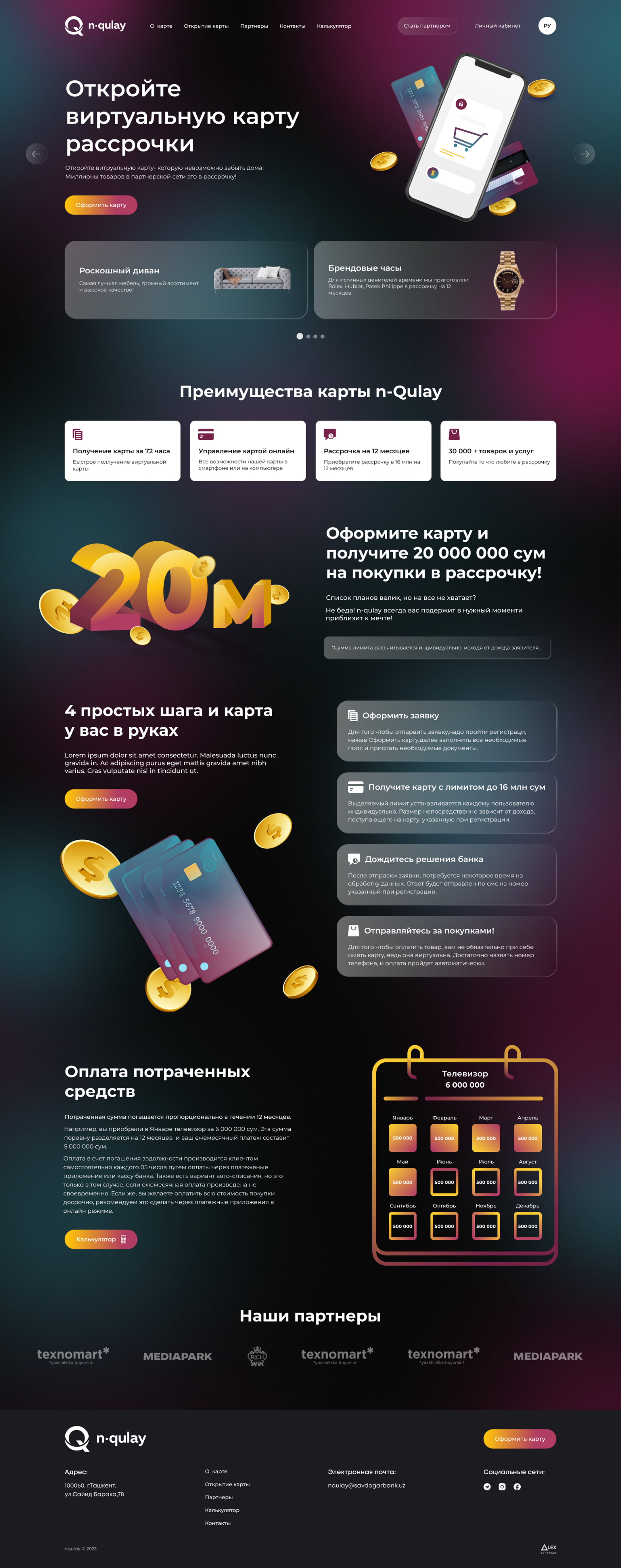 N-Qulay — сервис, созданный для удобства и комфорта пользователей. Проект объединяет простоту интерфейса, современный дизайн и понятную структуру, чтобы каждый мог быстро найти нужное решение. Всё продумано до мелочей — от визуала до функционала.